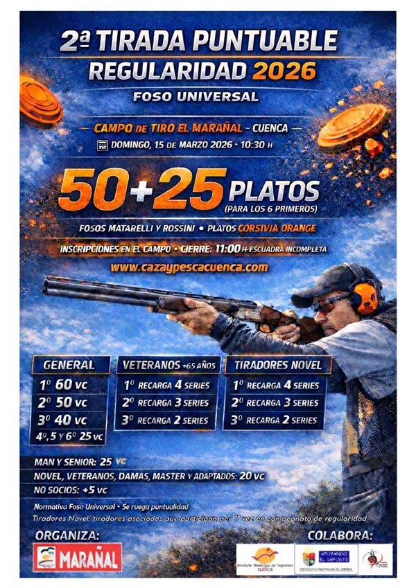 CAMPO DE TIRO EL MARAÑAL (CUENCA) 2ª TIRADA PUNTUABLE REGULARIDAD 2026. FOSO UNIVERSAL
